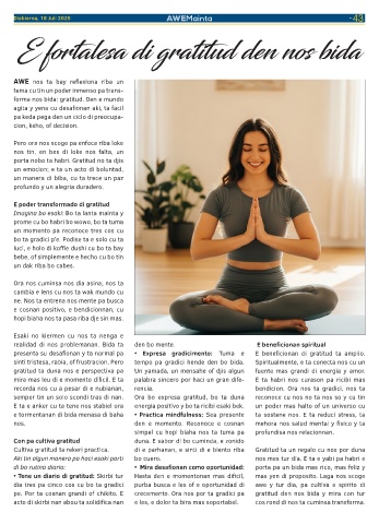 presenta su desafionan y ta normal pa • Expresa gradicimento: Tuma e E beneficionan di gratitud ta amplio.
