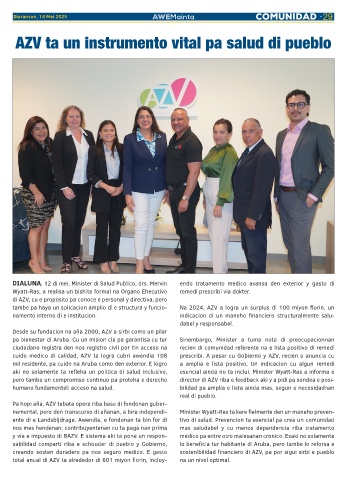 pa bienestar di Aruba. Cu un mision cla pa garantisa cu tur Sinembargo, Minister a tuma nota di preocupacionnan