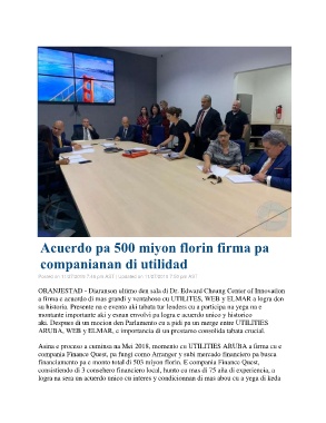 a firma e acuerdo di mas grandi y ventahoso cu UTILITES, WEB y ELMAR a logra den