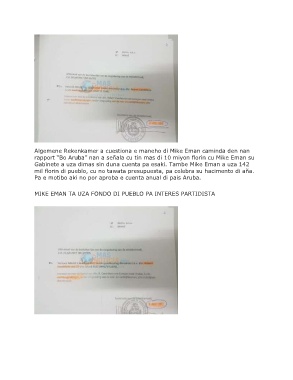rapport “Bo Aruba” nan a señala cu tin mas di 10 miyon florin cu Mike Eman su