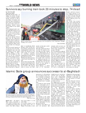 time of the fire. Survivors passengers jumping off the federal capital, was carry- train by the the Tableeqi trary, according to Rail-