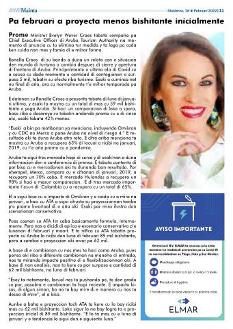 yecta cu Aruba lo ricibi den luna di februari 89 mil bishitante,