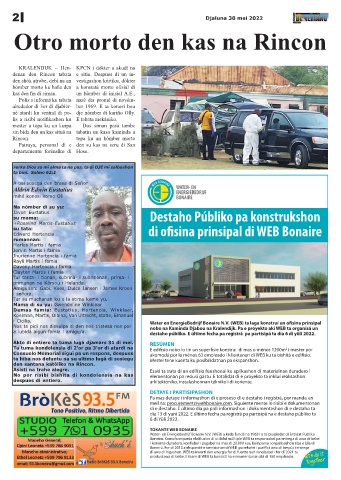 i Cicilia. Water en EnergieBedrijf Bonaire N.V. (WEB) ta laga konstruí un ofisina prinsipal