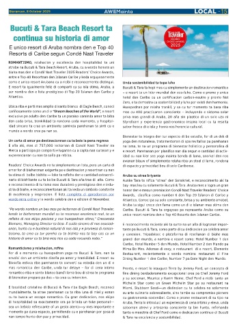 “Pa wordo nombra un bes mas pa lectornan di Condé Nast Traveler, Caribe. Bucuti & Tara ta orguyoso pa representa Aruba como su