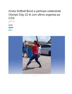 Aruba Softball Bond a participa celebrando Olympic Day 23 di Juni ultimo organisa pa COA June 25, 2018 0 SHARE Facebook Twitter - Advertisement -