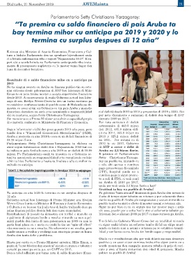 Ta anticipa cu aña 2020 lo termina cu un surplus despues di Pa gobierno “turn around” finansas di pais Aruba den menos di