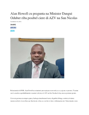 Parlamentario di POR, Alan Howell ta sumamente preocupa pa cu un noticia cu a yega na su persona. Ta asina