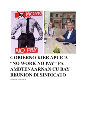 GOBIERNO KIER APLICA “NO WORK NO PAY” PA AMBTENAARNAN CU BAY REUNION DI SINDICATO 20 November, 2019, 9:49 pm 2020