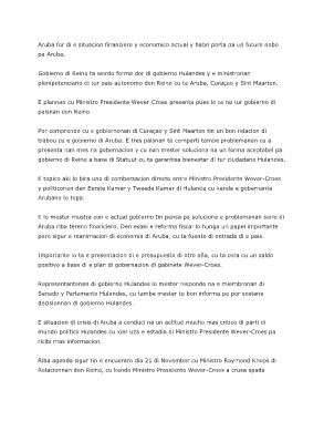 Aruba for di e situacion financiero y economico actual y habri porta pa un futuro nobo