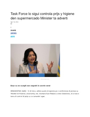 Minister di Finanza y Economia, sra. Xiomara Ruiz-Maduro a tene Diaranzon, el a toca e