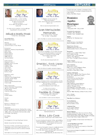 despedida cual lo tuma lugar Diasabra 21 di The service for burial in Aruba to celebrate his life Di 9.00 a.m. pa 11.00 a.m.