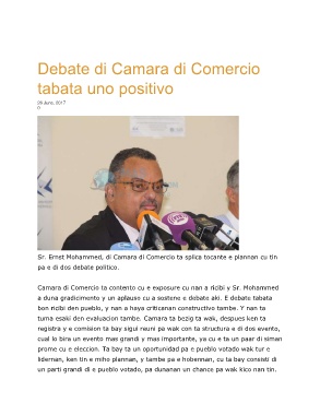 Sr. Ernst Mohammed, di Camara di Comercio ta splica tocante e plannan cu tin
