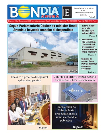Diamars 16 di September 2025 www.bondia.com Email: noticia@bondia.com Tel: 582-7800 Fax: 582-7044 1,75 Florin