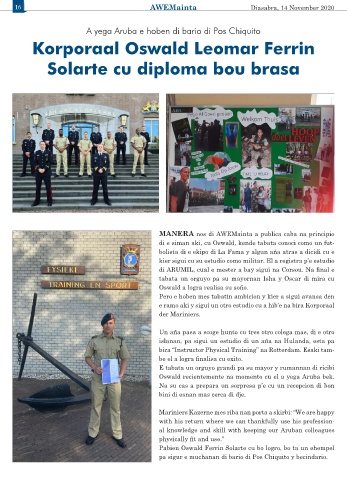 Oswald recientemente na momento cu el a yega Aruba bek.