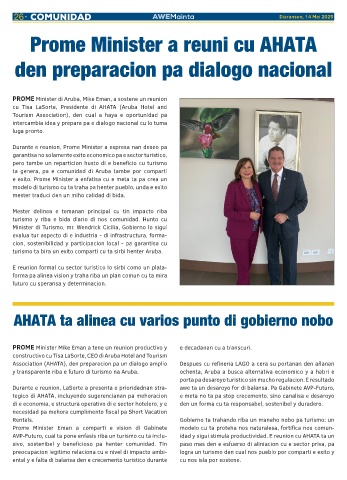 Association (AHATA), den preparacion pa un dialogo amplio Despues cu refineria LAGO a cera su portanan den añanan