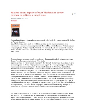 un cambio grandi pa Aruba. “E proyecto di kiosco ta parti di e vision grandi, pero tambe e ta