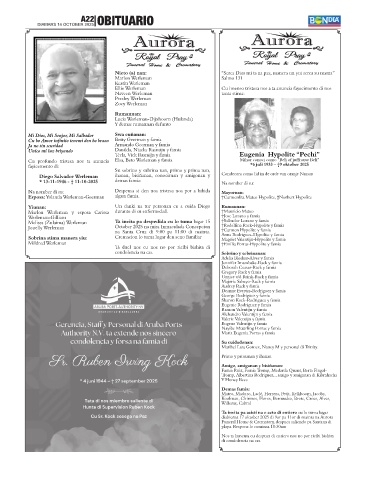 Cu  profundo  tristesa  nos  ta  anuncia   Elsa, Beto Werleman y famia                         Mihor conoci como “Beli of juffrouw Beli”