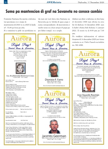di december 2020 na Aurora Funeral Home di 9’or pa Jacento Geerman Nos disculpasinos por a lubida un of otrofamia den