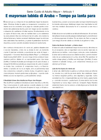 chens aki pasa, Aruba lo perde mas cu djis placa – lo perde credi- bo, envolve bo y pidi bo pa keda alerta. Nos adultonan mayor