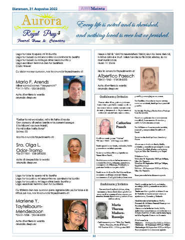 anuncia despues. Maria, Theresita, Maria di Wimco’’ Diabierna: 02 Septemper 2022 pa 7:00pm