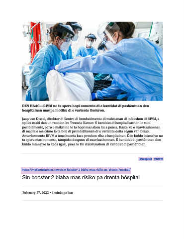 Anteriormente RIVM a tene kuenta ku e preshon riba e hospitalnan. Den kuido intensivo no