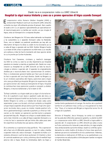 Hospital ta sigui marca historia y awo cu e prome operacion di higra uzando Sonopet