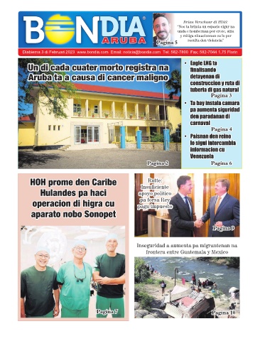 Diabierna 3 di Februari 2023 www.bondia.com Email: noticia@bondia.com Tel: 582-7800 Fax: 582-7044 1,75 Florin