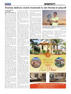 over the water, urged it to broadcast booth for most chaotic arena, he was bo- Justin Thomas holds up his trophy after winning the Honda Clas-