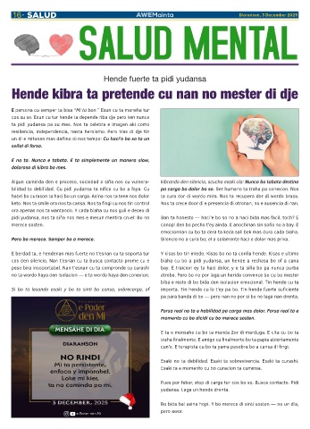 bilidad ta debilidad. Cu pidi yudansa ta nifica cu bo a faya. Cu pa carga bo dolor bo so. Ser humano ta traha pa conexion. Nos