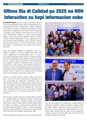 ta central. Tur hende cu ta traha rond di e pashent mester calidad pa coleganan di HOH no lo tabata posibel na 2025.