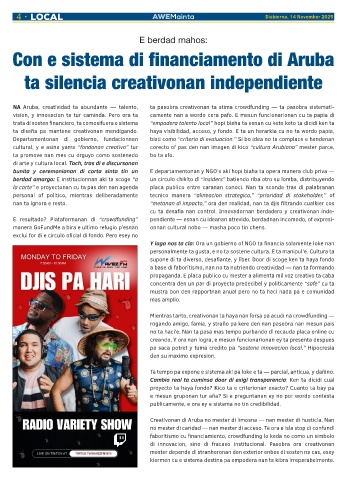 NA Aruba, creatividad ta abundante — talento, ta pasobra creativonan ta stima crowdfunding — ta pasobra sistemati-