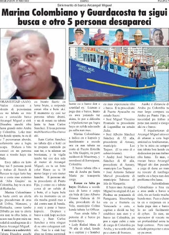 bay tin 5 persona perdi Miguel, cu ta un boto Colombia. procedente di Amuay, Miguel aki den pasado