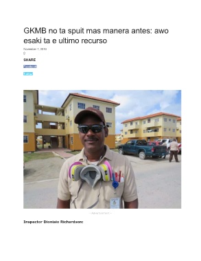 GKMB no ta spuit mas manera antes: awo esaki ta e ultimo recurso November 7, 2019 0 SHARE Facebook Twitter - Advertisement - Inspector Dionisio Richardson: