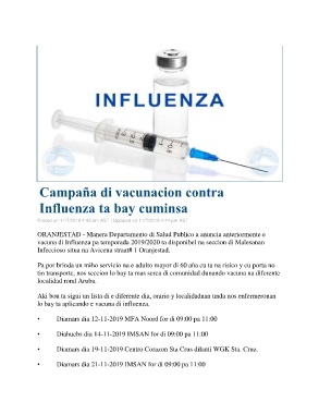 vacuna di Influenza pa temporada 2019/2020 ta disponibel na seccion di Malesanan