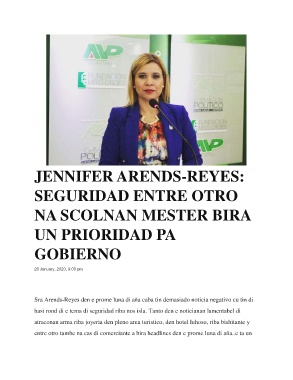 Sra Arends-Reyes den e prome luna di aña caba tin demasiado noticia negativo cu tin di
