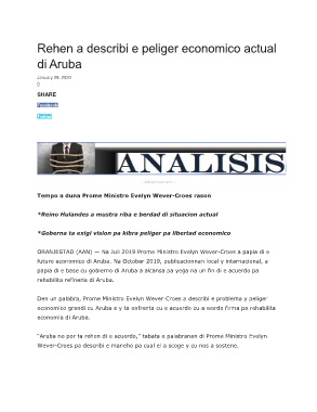 futuro economico di Aruba. Na October 2019, publicacionnan local y internacional, a