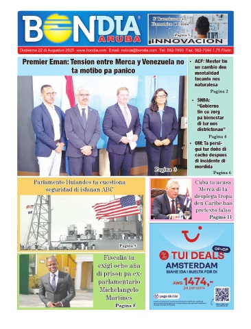 Diabierna 22 di Augustus 2025 www.bondia.com Email: noticia@bondia.com Tel: 582-7800 Fax: 582-7044 1,75 Florin
