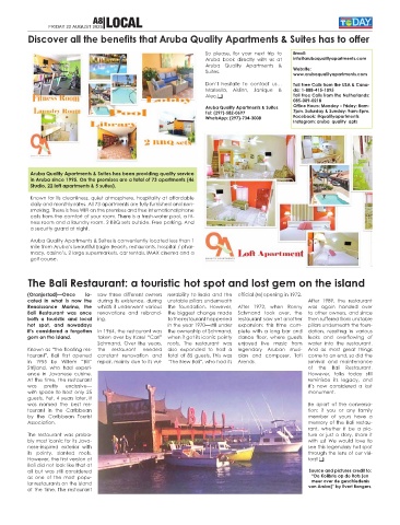 Aruba Quality Apartments & Suites Office Hours: Monday – Friday: 8am-