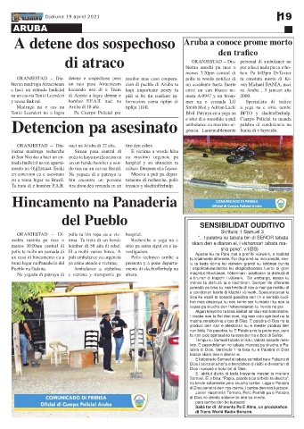 ORANJESTAD -- Di- polis ta bin topa cu e vic- hospital. Skritura: 1 Samuel 3