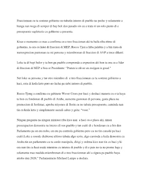 gobierno, ta ora cu lider di fraccion di MEP, Rocco Tjon a hiba palabra y a bin trata di