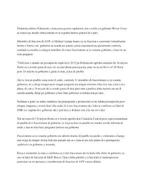 “Gobierno a manda un presupuesto supletorio 2019 pa Parlamento aproba caminda tin 14 miyon