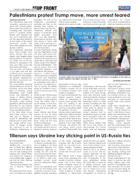 ian people,” declared Ra- to meet with Palestinian A woman walks Past a poster praising U.S. President Donald Trump’s recognition of Jerusalem as