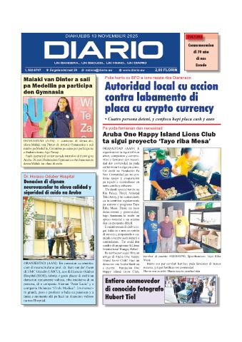 ORANJESTAD (AAN): En conexion cu emerita- donacion via Aruba Bank na Hunto nos por combati hamber, yuda famianan di menos