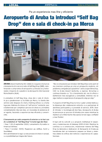 di e unidadnan di “Self Bag Drop” lo tuma luga den fase: E logro aki ta coincidi cu e proyecto multianual di expan-