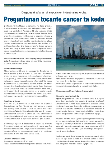 blaas, pecho, y colon. Refinerianan ta emiti substancianan • Estudionan di salud a largo plaso di residentenan cu a biba