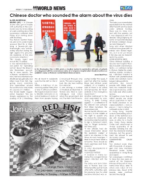 The World Health Organi- the hospital received near- Wuhan who tried to warn antined in the emergency tion halls and other public