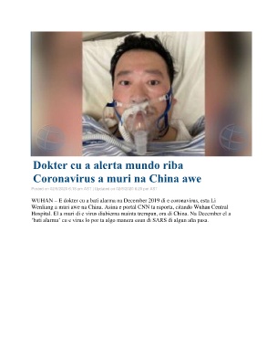 Wenliang a muri awe na China. Asina e portal CNN ta raporta, citando Wuhan Central