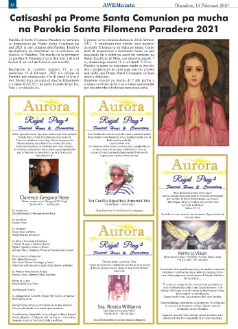 diabierna 19 di februari 2021 n’e oficina di nan ricibi nan Prome Santa Comunion cu hopi
