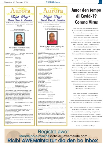 Na nomber di su casa: Maria Gladys Celaire - Koolman Mayornan: †Angel Lorenzo Perez y Bertha Olimpia Rodriguez Nos ta yora y bolbe hari cu alegria y gozo den su amor