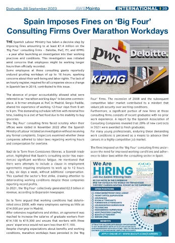 union, highlighted that Spain’s consulting sector has expe- ence to labor laws within the consulting sector in Spain.